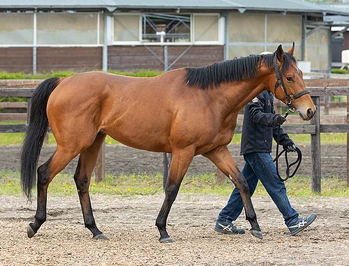 【近況】15日の検疫で栗東へ。デビュー戦は来月3日の阪神・芝1400mを予定しています。